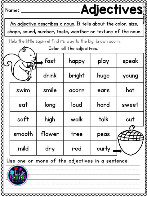 Web all about adjectives is a no prep, printable pack designed to suit kindergarten, grade 1 and grade 2. Want to teach your first grade students about describing words? Web check out turtle diary's large collection of adjectives worksheets for first grade.