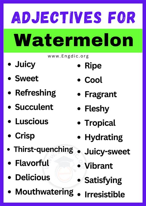 Find more similar words at wordhippo.com! Students will create a watermelon and write different adjectives on each seed. Create a free ambiki account to view the 10 activity list items for this activity list.