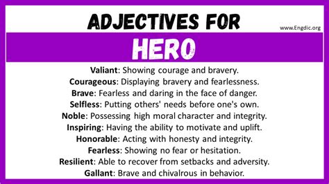Adjectives Of A Hero. We have here a list of words that relates to our term. Web for each word in our adjective dictionary, you’ll find a list of describing words sorted by popularity.
