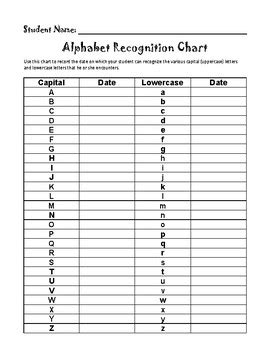 Alphabet Recognition Chart. The purpose of this worksheet is to test a young student on which letters he or she can. Make sure you have the.
