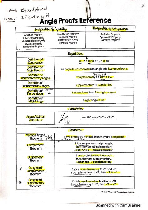 Angle Proofs Reference. Web or, if \(\angle abc\cong \angle def\) and \(\angle def\cong \angle ghi\), then \(\angle abc\cong \angle ghi\) when you solve equations in algebra you use properties of equality. Web study with quizlet and memorize flashcards containing terms like definition of congruence, definition of angle bisector, definition of complementary angles and more.