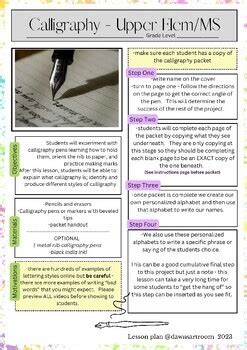 Web Calligraphy Lesson Handout, Lesson Plan, Grading Rubric, And Practice Papers.