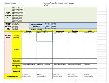 Ccss Math Lesson Plan Template. This is only a template for you to create and design your own lessons and. This is a weekly lesson plan template for a math intervention teacher.